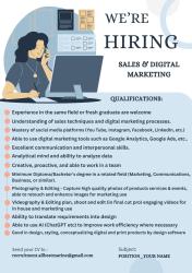 We are Hiring Sales and Digital Marketing. Available for fresh graduate also